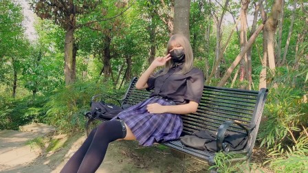 伪娘 // 烧鸡带把JK公园脱衣换装与露出自慰