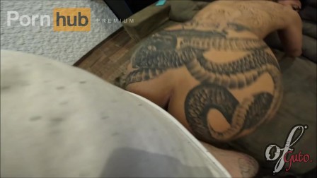 Fudendo com a tatuada safada e rabuda de quatro no sofa da sala