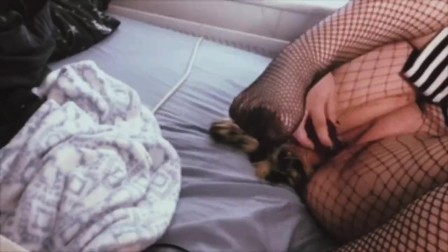 puppy playing w/ himself in his fishnets !!