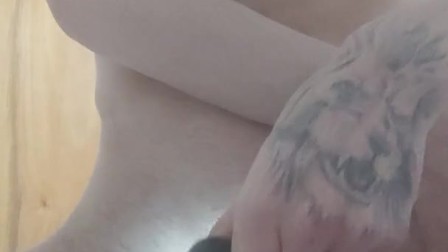 Skinny teen shaves his big hairy erected cock and balls