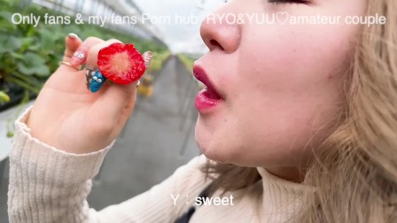 ノーパン散歩♡可愛い彼女といちご狩りデートでハメ撮りSEX!素人/カップル/個人撮影/美少女/中出し/パイパン/スタイル抜群/色白美乳/露出/顔出し/英語字幕