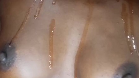 Se le nota el placer, mi hermanastra se acaricia los pechos mientras gime para ti en silencio